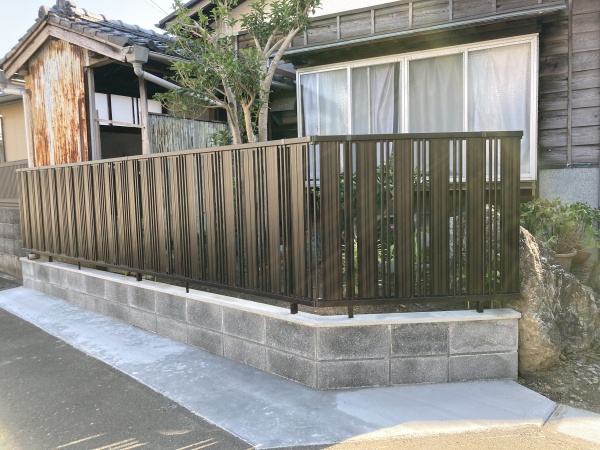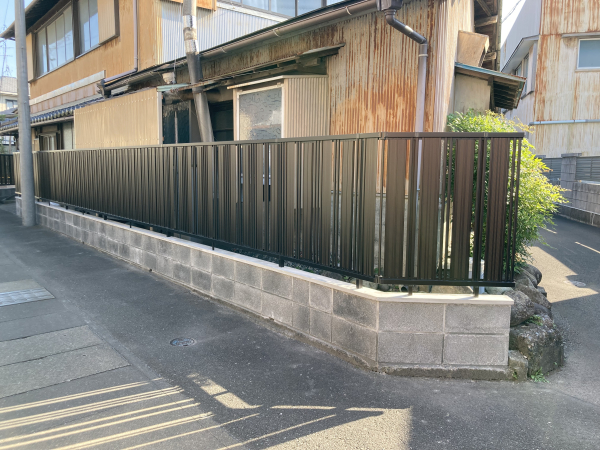 道路に面したブロック塀に老朽化によるひび割れが発生したので、新しくブロックとフェンスで塀を造りました。