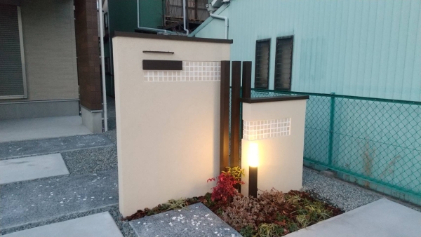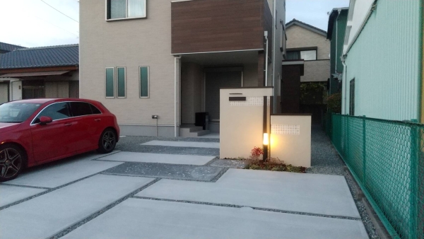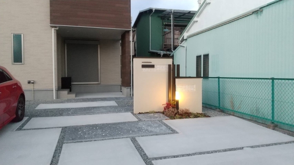 駐輪場・アプローチ洗い出し仕上げ・門塀・植栽